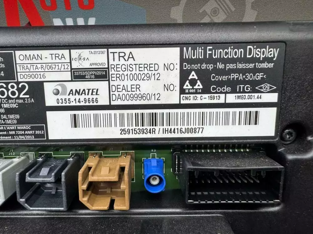 259153934R Дисплей навигации Renault Trafic III, Kangoo II, Zoe, Clio IV