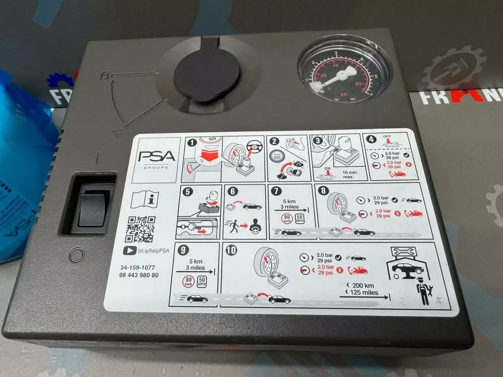 Компрессор подкачки шин 120W, герметик для ремонта Peugeot/Citroen/Opel