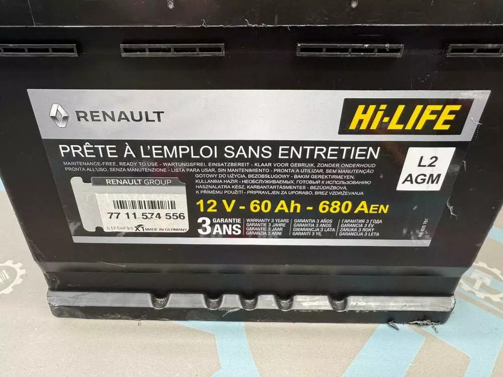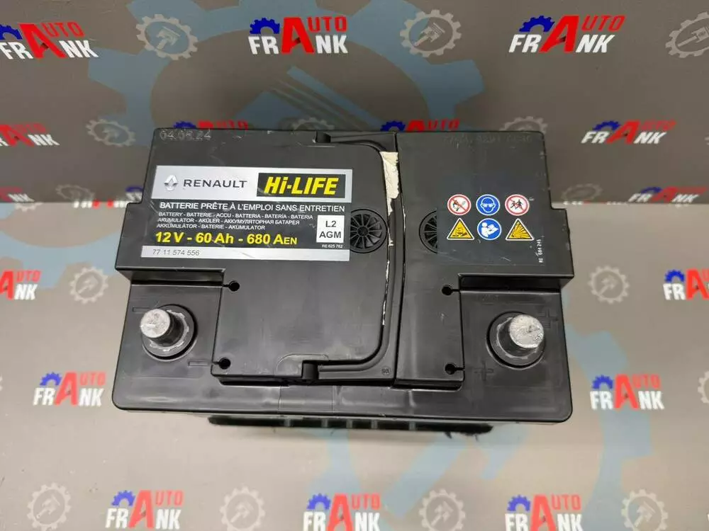 Аккумуляторная батарея, аккумулятор АКБ AGM 12B 60Аh 680A, 7711574556 Dacia/ Renault