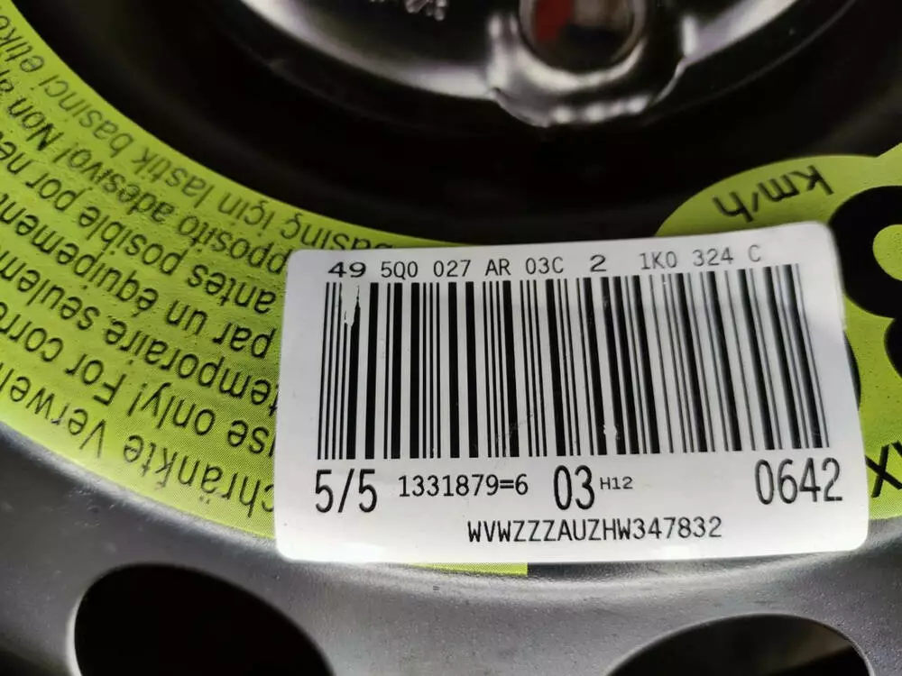 Запаска/ докатка 1K0601027S, 31/2Jx16, H2, ET25,5 для Audi A3/ Seat Altea/ Volkswagen Golf VI, EOS, Scirocco